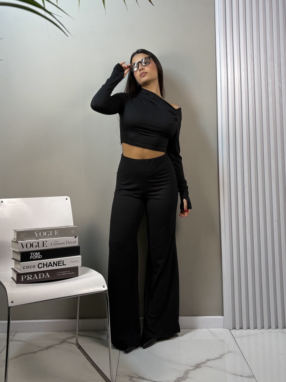 Set composto da pantalone e maglia asimmetrica in taglia unico. Un abbinamento versatile che unisce comfort e stile contemporaneo. La maglia con design asimmetrico crea un effetto dinamico e sofisticato, perfetto per chi ama distinguersi. Il pantalone dal taglio regolare completa l'outfit con eleganza. Ideale per occasioni casual o semi-formali, questo set rappresenta la scelta giusta per un look moderno e curato.