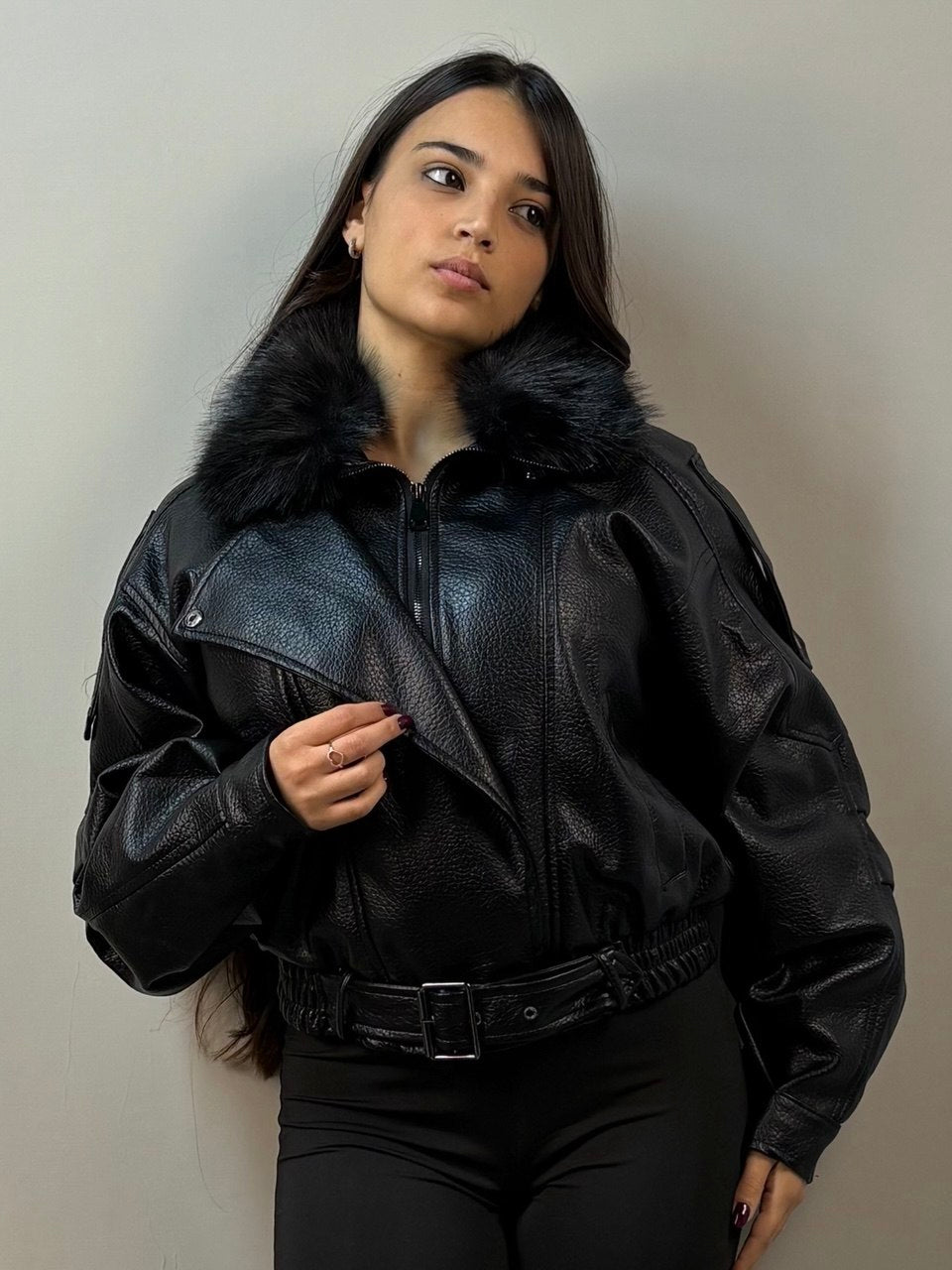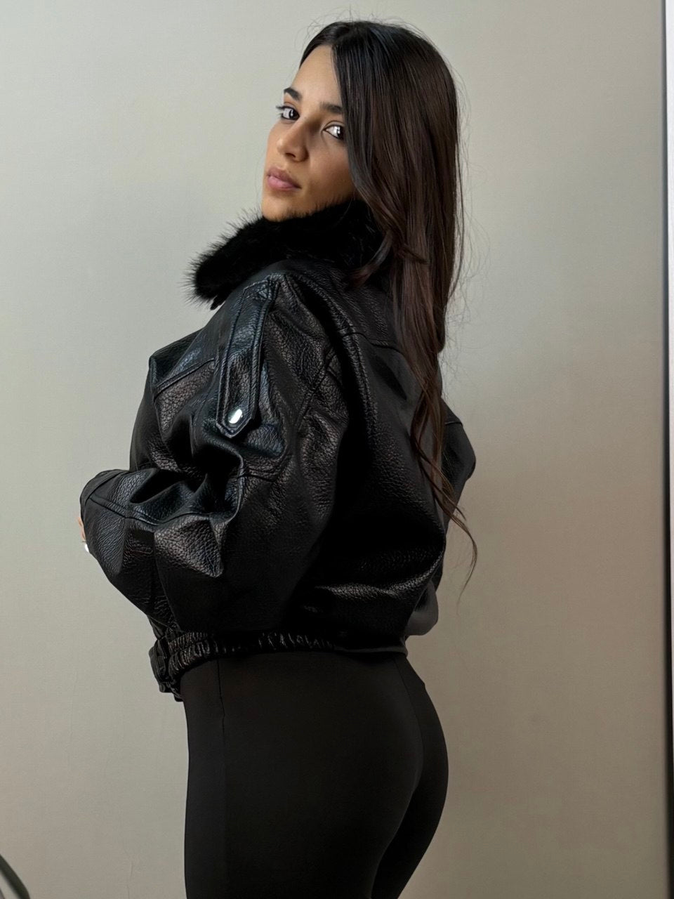 Giubbino in ecopelle dal design moderno e versatile, perfetto per chi ricerca stile e praticità. La fodera interna in morbida pelliccia garantisce calore e comfort durante i mesi più freddi, mentre il materiale ecologico assicura una scelta consapevole e sostenibile. Ideale per completare look casual e urbani con eleganza.