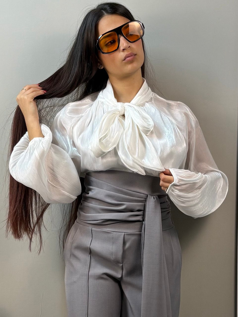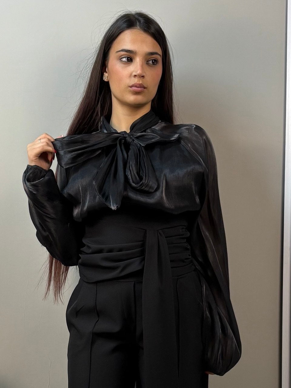 Maglia elegante con fiocco, perfetta per aggiungere un tocco di raffinatezza al tuo guardaroba. Realizzata in tessuto morbido e confortevole, si adatta a diverse occasioni, dalla quotidianità agli eventi speciali. La taglia unica garantisce una vestibilità versatile e pratica. Un capo essenziale che combina stile e comodità, ideale per chi ricerca semplicità senza rinunciare all'eleganza.