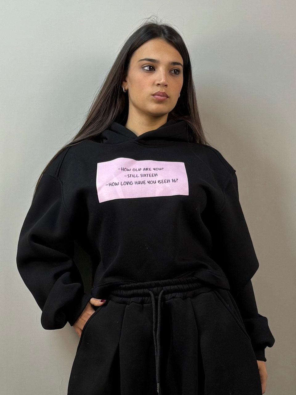Felpa crop in cotone con stampa frontale caratteristica. Il taglio accorciato esalta la silhouette, perfetto per abbinamenti versatili con jeans o gonne a vita alta. La stampa garantisce un look moderno e originale. Ideale per chi ama uno stile casual e contemporaneo, comodo da indossare in ogni occasione.
