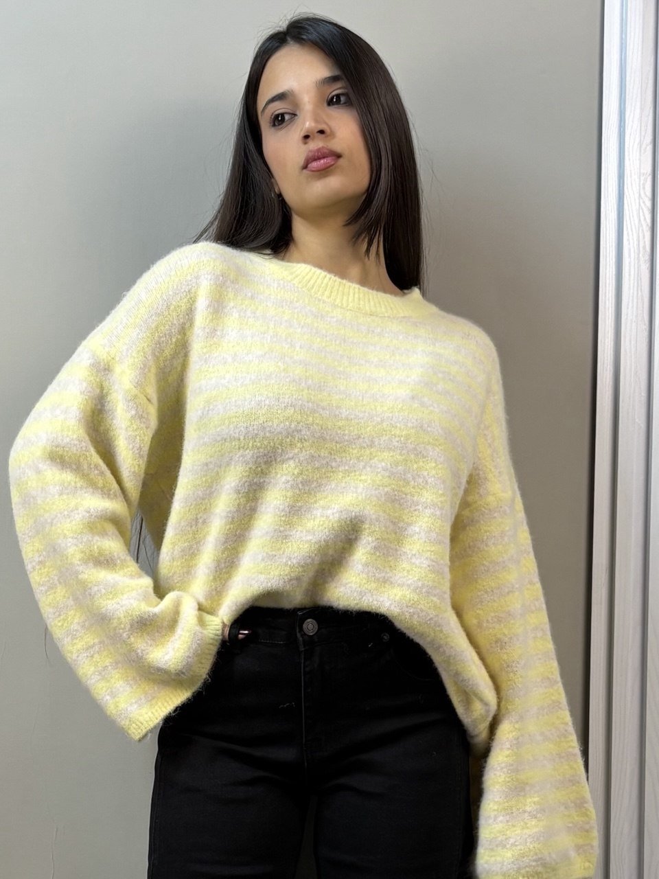 Maglioncino in morbido cotone con eleganti righe orizzontali. Perfetto per creare look casual e versatili, si abbina facilmente con jeans, pantaloni e gonne. La trama leggera garantisce comfort durante tutto il giorno, mentre il design senza tempo lo rende un pezzo essenziale nel guardaroba. Ideale per la mezza stagione e per chi ama uno stile classico e raffinato.