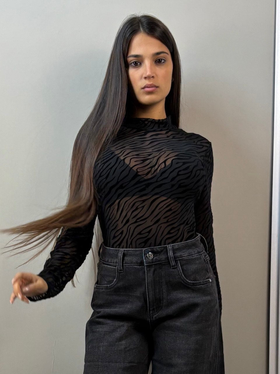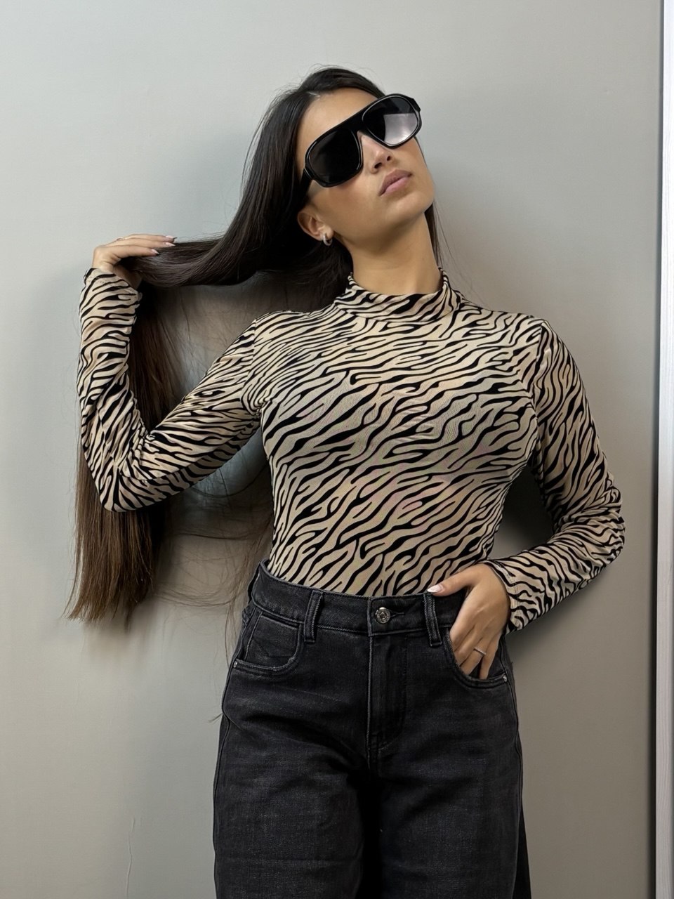 Body a righe zebrate in taglia unica, perfetto per chi ama uno stile audace e versatile. Il design a contrasto bianco e nero si abbina facilmente a qualsiasi outfit, dal casual al più sofisticato. Realizzato con materiali di qualità, garantisce comfort durante tutto il giorno. Un pezzo essenziale per aggiungere carattere al tuo guardaroba con un tocco di eleganza contemporanea.