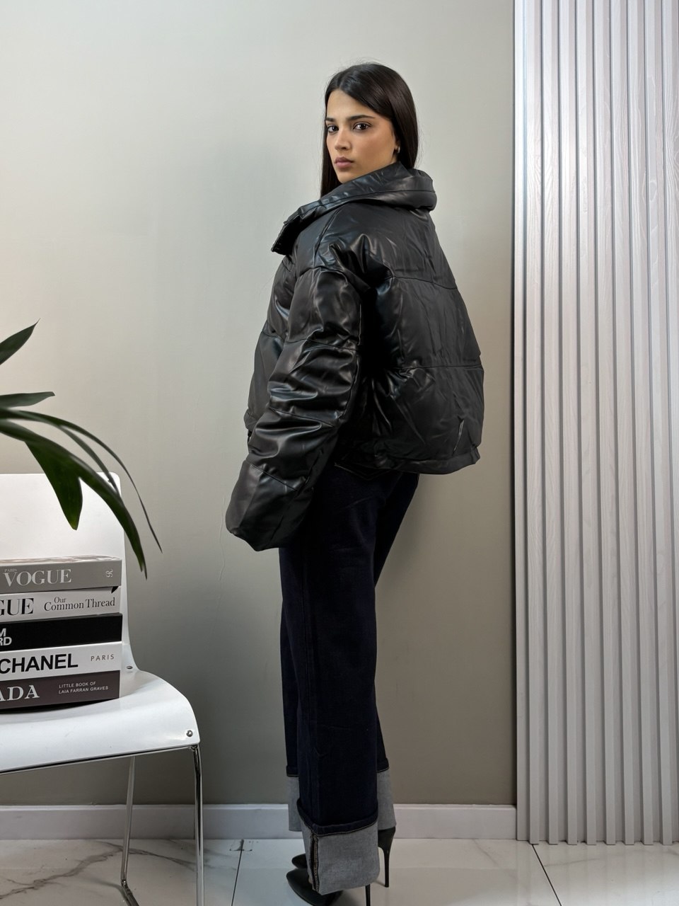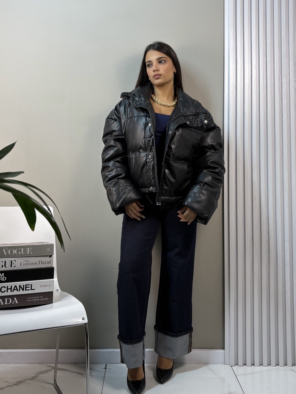 Bomber Miaco in ecopelle con design versatile e pratico. Realizzato in materiale ecologico, offre un look moderno e sostenibile. La taglia unica si adatta perfettamente grazie agli elastici in vita regolabili, permettendoti di personalizzare la vestibilità secondo le tue preferenze. Perfetto per uno stile casual e consapevole.