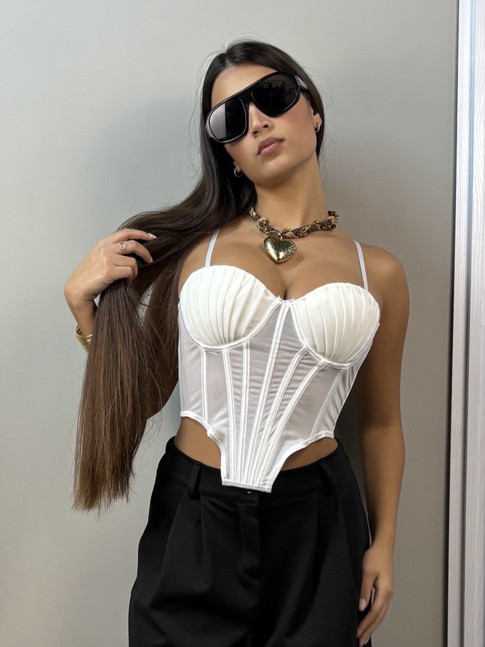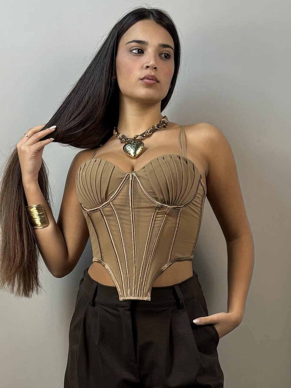 Corpetto Shaila: eleganza e versatilità in un capo essenziale. Questo corpetto affascinante combina linee raffinate con una silhouette che valorizza la figura. Perfetto per occasioni speciali o per elevare il tuo look quotidiano, si abbina facilmente con gonne, pantaloni e accessori. Realizzato con attenzione ai dettagli, il corpetto Shaila è il pezzo che completa ogni guardaroba con stile e sofisticatezza. Indossalo per sentirsi sicura e affascinante in ogni momento.