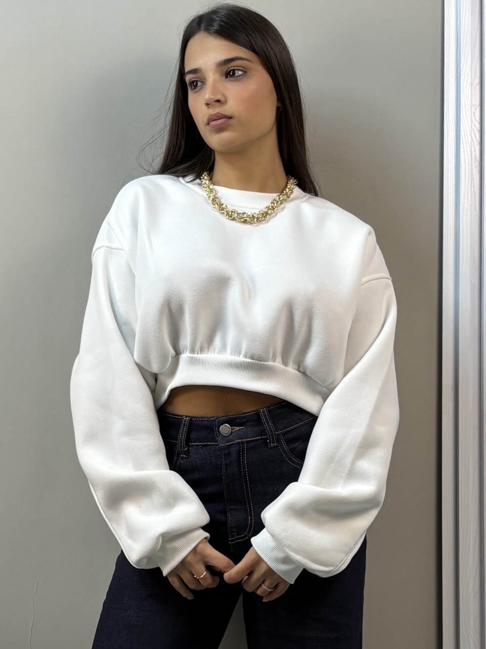 Felpa crop in taglia unica, perfetta per chi ama uno stile casual e moderno. Realizzata con materiale morbido e confortevole, questa felpa si adatta a diverse silhouette grazie alla vestibilità versatile. Ideale da indossare da sola o in abbinamento con altri capi, è la scelta giusta per creare look trendy e rilassati in qualsiasi occasione.